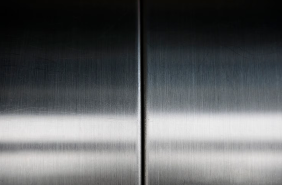 Acabamento escovado com grão 180-240. Disfarça riscos leves e marcas de dedo, sendo o mais usado em restaurantes, hospitais e elevadores.